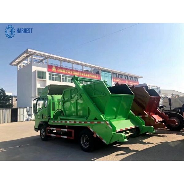 The swing arm garbage truck can be used in urban erea and suburb. The container on the rear can be put down on the ground to gather garbage at a fixed location when the container gathers full. The truck lift it on the flat bed on the rear of the truck then dump the garbage in the garbage center.